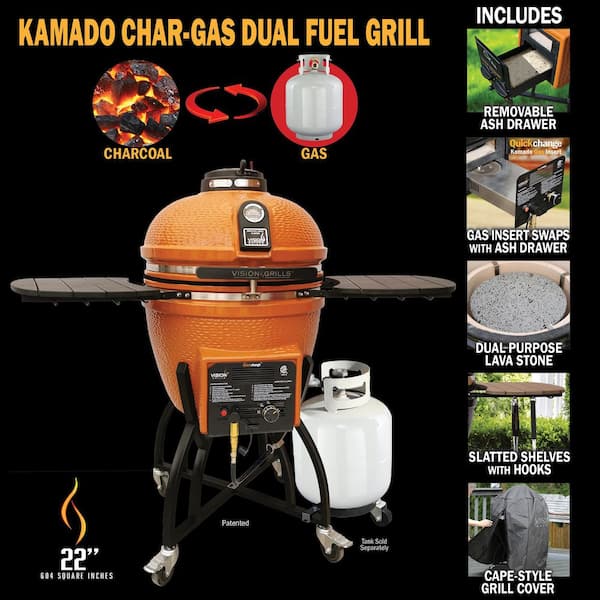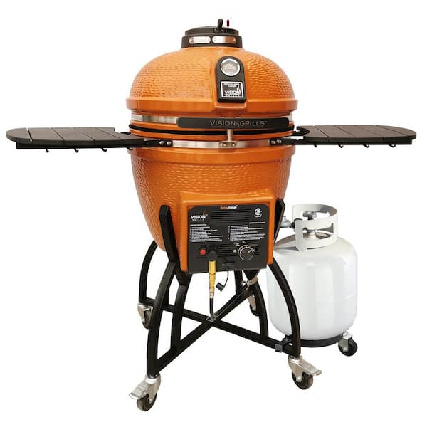 Customer Reviews for Vision Grills 22 in. Kamado Dual Fuel Charcoal/Gas Grill in Orange with Cover, Gas Burner Kit, Cart, Shelves, Lava Stone, Ash Drawer
