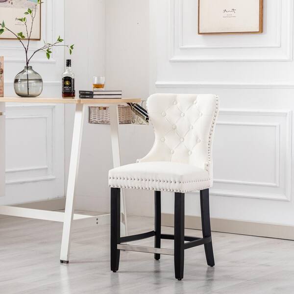Customer Reviews for WESTINFURNITURE Harper 24 in. High Back Nail Head Trim Button Tufted Cream Velvet Counter Stool with Solid Wood Frame in Black
