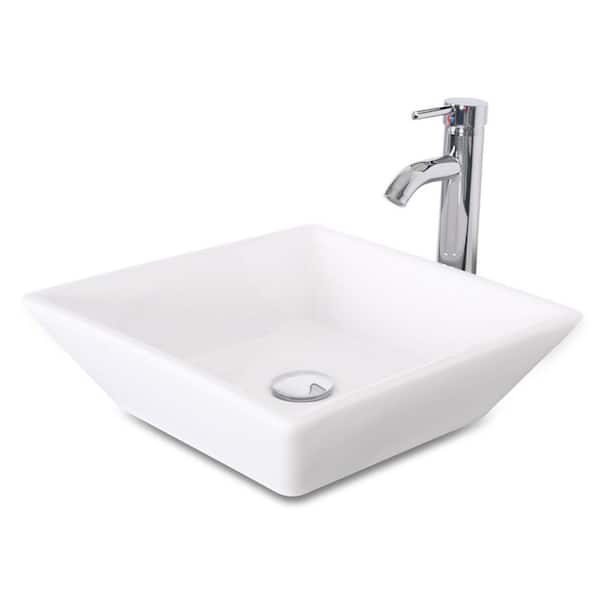 Customer Reviews for eclife White Ceramic Square Vessel Sink with Chrome Faucet Pop Up Drain Set