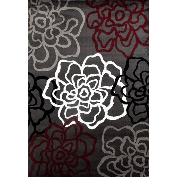 Contemporary Floral Red/Gray 10 ft. x 14 ft. Area Rug