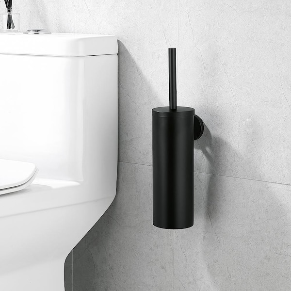 10 in. Wall-Mounted Toilet Brush and Holder Freestanding Toilet brush holder in Matte Black
