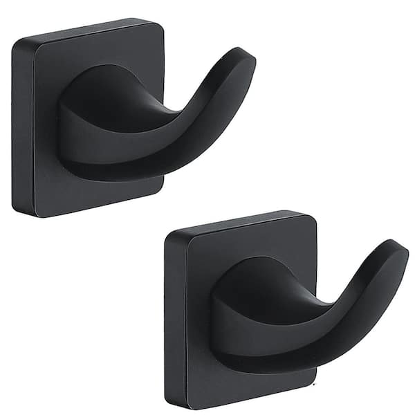 2-Pack Wall Mounted J-Hook Robe/Towel Hook in Stainless Steel Matte Black