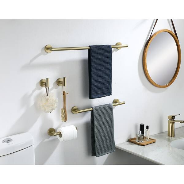 4 -Piece Bath Hardware Set with Mounting Hardware in Stainless Steel Brushed Gold