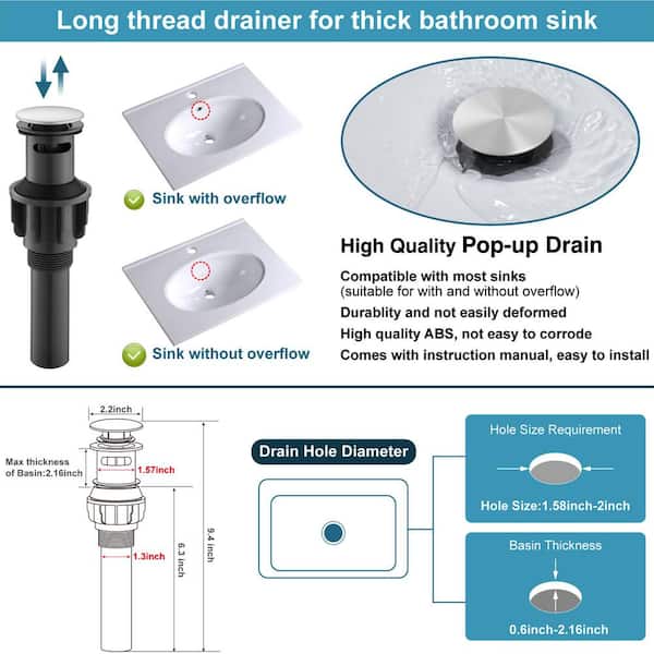 • Includes pop up drain