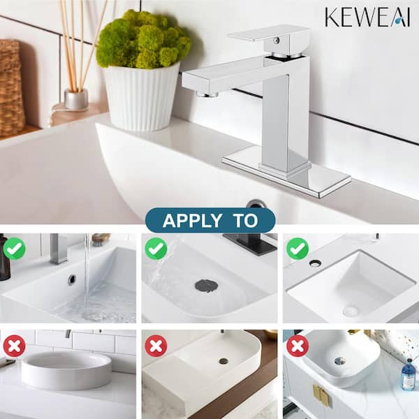 single Handle Vessel Sink Faucet with Drain Kit Included and Cover Plate Stainless Steel in Polish Chrome