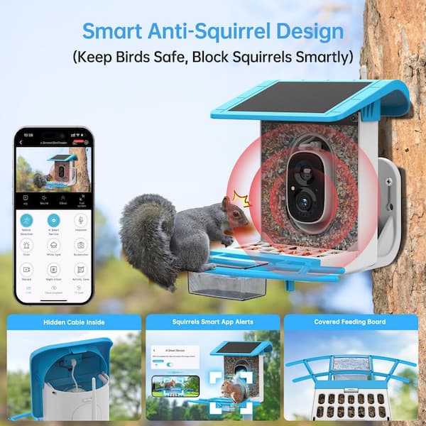 Smart Bird Feeder With Camera-2L Birdhouse Solar Powered-AI Recognition Bird Species Watching Live Video