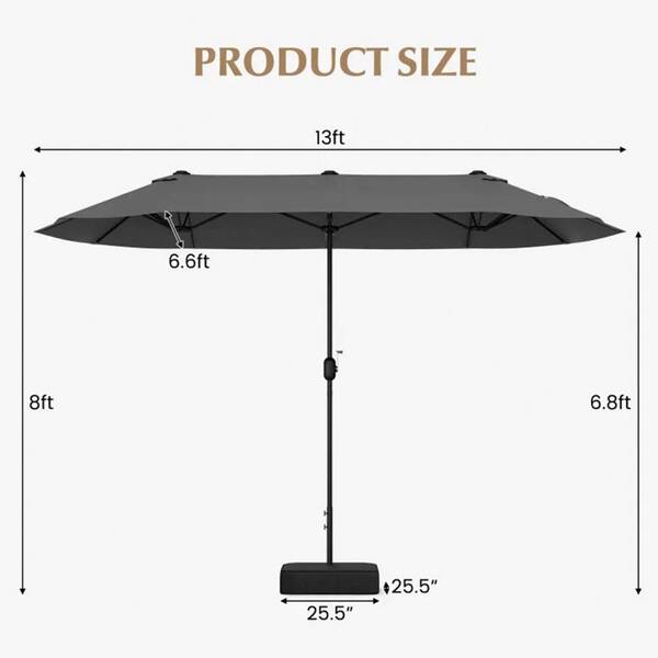13 ft. Double-Sided Patio Umbrella Twin Table Umbrella with Crank Handle in Grey