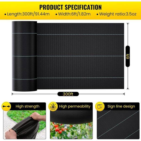 2 x 3 ft. 300 ft. Premium Weed Barrier Fabric Heavy Duty 3. 2 oz. Polyethylene Ground Cover