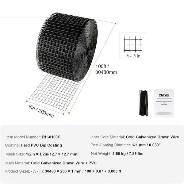8 in. x 100 ft. Solar Panel Bird Guard Garden Fence, Critter Guard Roll Kit W/ 50-Pcs Stainless, 1/2 in. Wire Roll Mesh