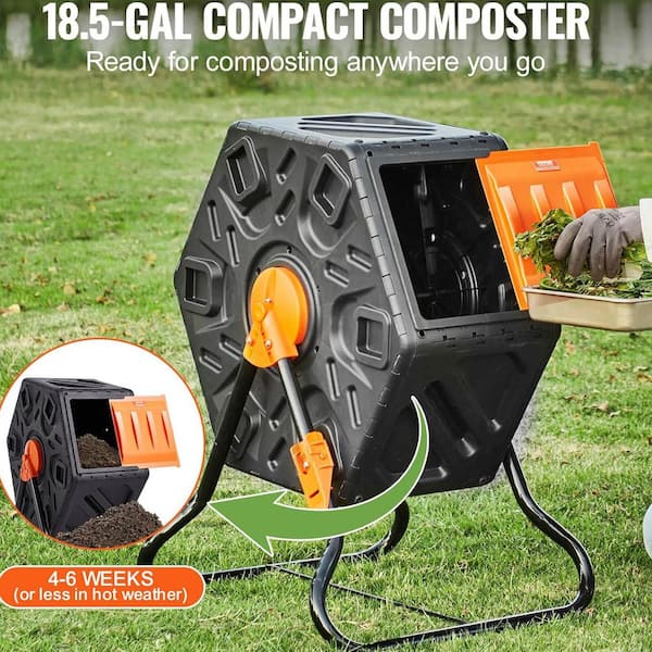 Compost Bin, 8.5 Gal. Compost Tumbler-Compact Rotating Bin with Sliding Door and Steel Frame, BPA-Free