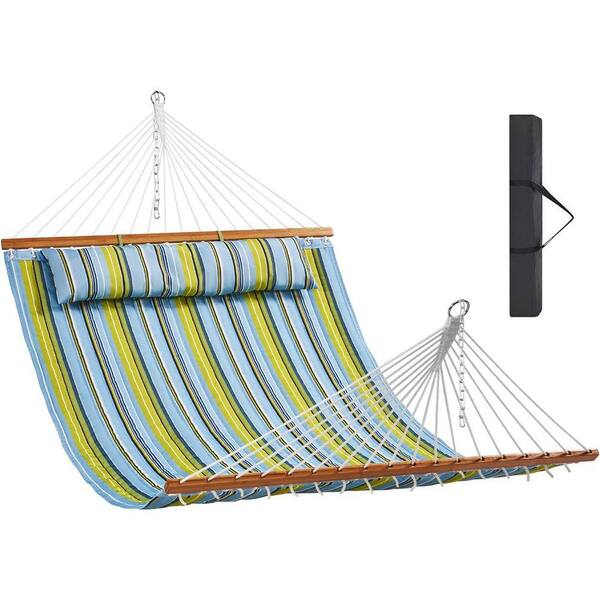 Quilted Fabric Hammock 12 ft. Double Hammock with Hardwood Spreader Bars 2 Person Quilted Hammock with Detachable Pillow