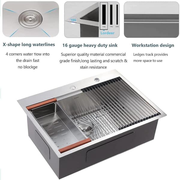 28 in. Kitchen Sink Drop-In 18-Gauge Stainless Steel Single Bowl Topmount Kitchen Sink Basin