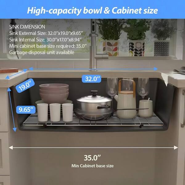 LOD 32 in. Undermount Single Bowl Matte Black Quartz Composite Workstation Kitchen Sink with Cutting Board