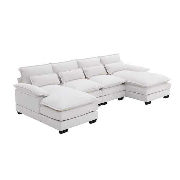 109.8 in. U-Shaped Velvet Sectional Sofa in White with Chaise Lounge and Waist Pillows