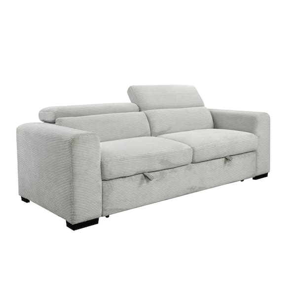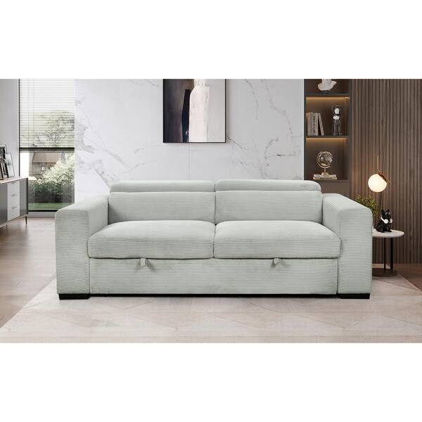 88 in. Light Gray Convertible Faux Leather Queen Size Sofa Bed with Adjustable Headrest
