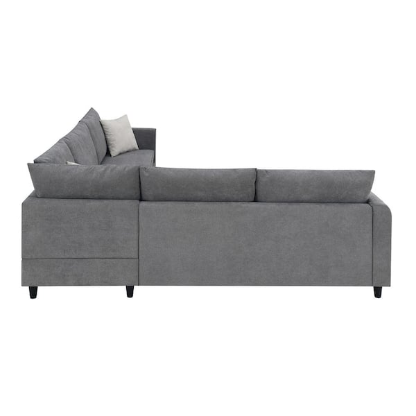 91 in. Modern L-Shape Polyester Sectional Sofa in Gray with 3-Pillows