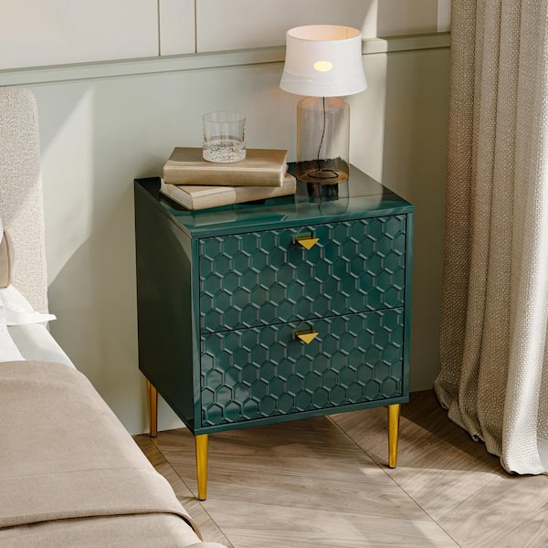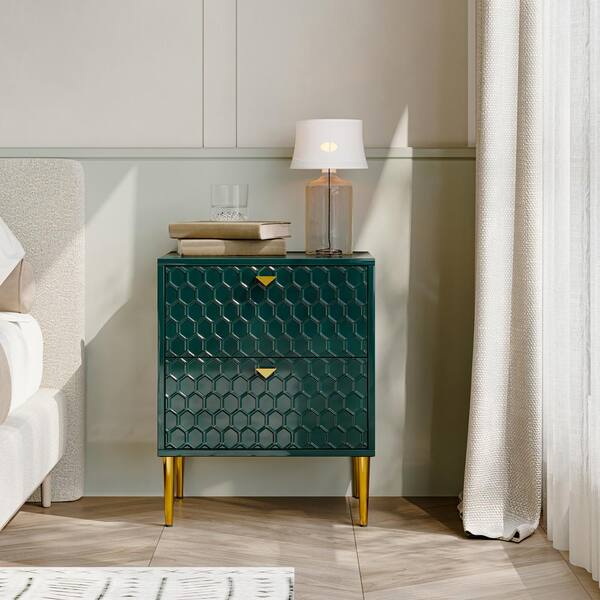Green 2 Drawer Nightstand 19.69 in. W with Adjustable Foot Nails for Bedroom, Living Room