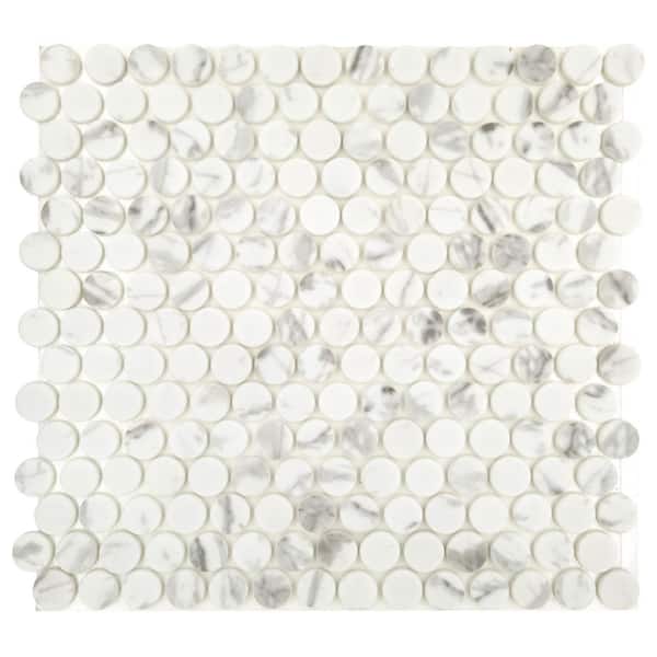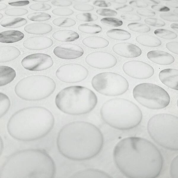 Carrara White Penny Round 11.1 in. x 10.4 in. Peel and Stick Backsplash Marble Looks Wall Tile (8.10 sq. ft./Case)