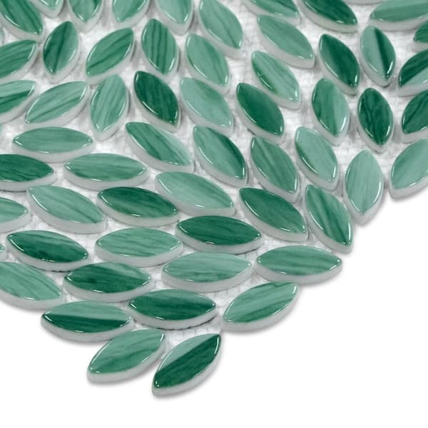 Flower Green 6 in. x 6 in. Glossy Recycled Glass Marble Looks Floor and Wall Mosaic Tile (0.25 sq. ft. /Case)