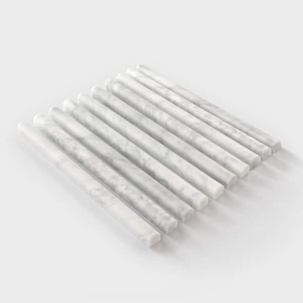 Honed Carrara White 12 in. x 0.75 in. Natural Marble Wall Pencil Tile Backsplash Accessory Wall Tile Trim (10-Pack)