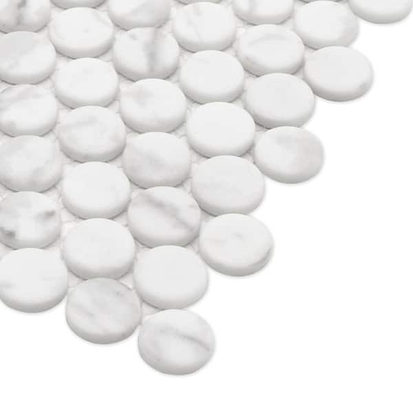 Penny Round White 6 in. x 6 in. x 0.4 in. Recycled Glass Marble Looks Floor and Wall Mosaic Tile (1-Pack, 0.25 sq. ft.)