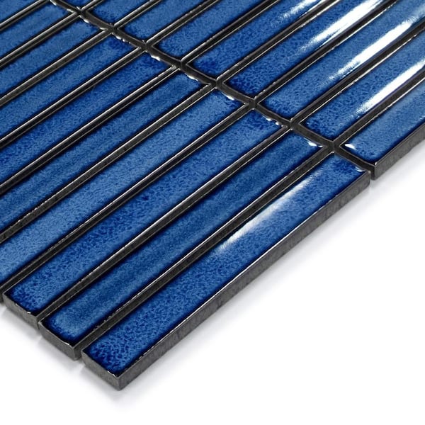 Stacked Blue 12 in. x 12 in. Glossy Porcelain Floor and Wall Mosaic Tile Kit Kat Finger Tile (5 sq. ft. /Case)