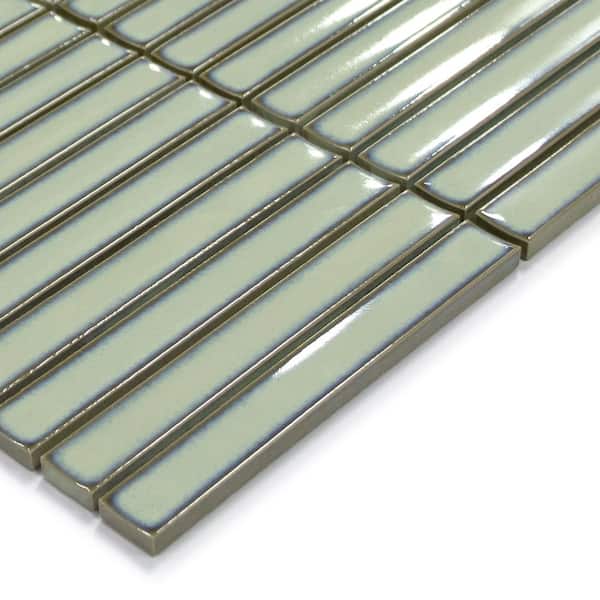 Stacked Green 12 in. x 12 in. Glossy Porcelain Floor and Wall Mosaic Tile Kit Kat Finger Tile (5 sq. ft. /Case)