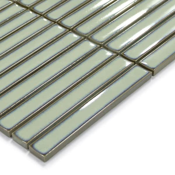 Stacked Green 6 in. x 6 in. Glossy Porcelain Floor and Wall Mosaic Tile Kit Kat Finger Tile (0.25 sq. ft. /Case)