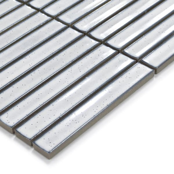 Stacked White 12 in. x 12 in. Glossy Porcelain Floor and Wall Mosaic Tile Kit Kat Finger Tile (5 sq. ft. /Case)