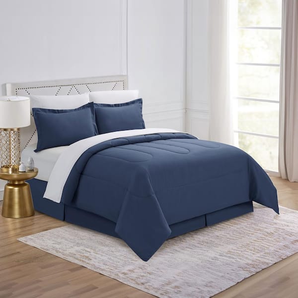 Swift Home All-Season 8-Piece Indigo Solid Color Microfiber King Bed in a Bag