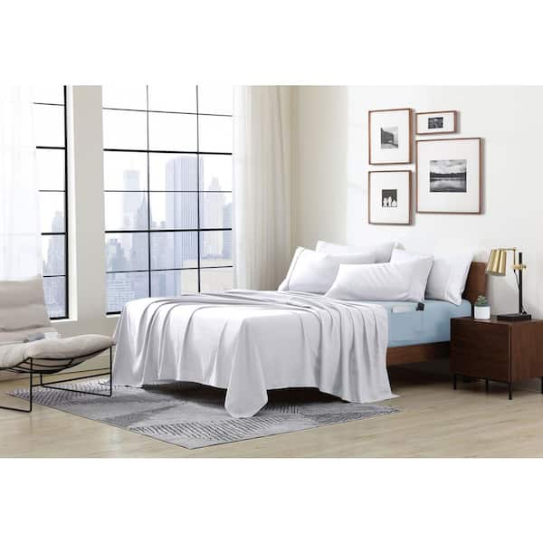 Twin XL Size Microfiber Fitted Sheet with 8 in. Double Storage Pockets, Blue Fog