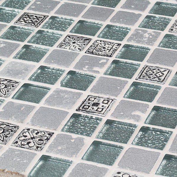 Silver Relic 11.75 in. x 11.75 in. x 8 mm Glass and Travertine Mosaic Wall Tile