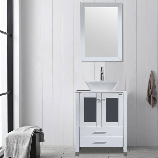 24 in. W x 21.7 in. D x 29.5 in. H Single Sink Bath Vanity in White with White Top and Mirror