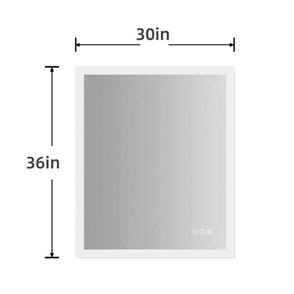 30 in. W x 36 in. H Square Aluminum Frameless Wall Mounted LED Bathroom Vanity Mirror in White