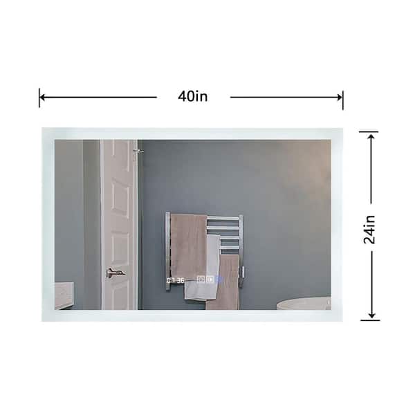 40 in. W x 24 in. H Rectangular Frameless Wall Mounted LED Bathroom Vanity Mirror with Dimmer Clock in White