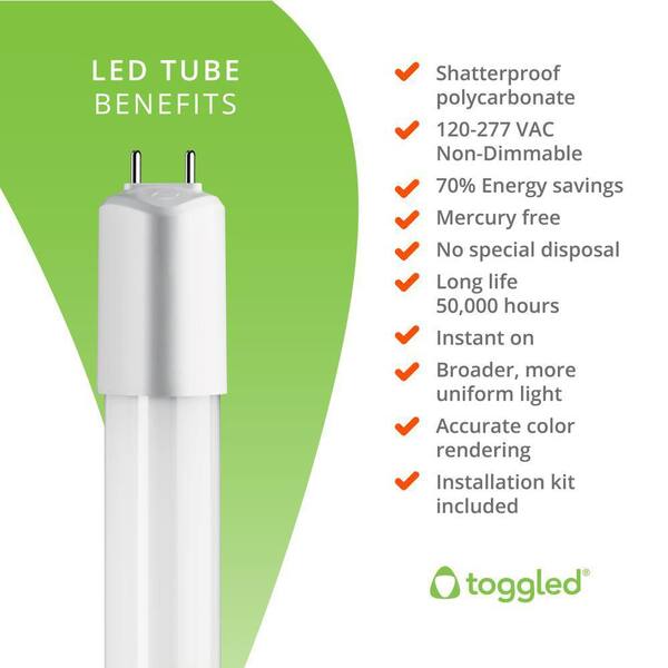 32-Watt Equivalent, 48 in. Linear T8 LED Tube Light Bulb, Daylight Deluxe, 6500K, 16 Watt (4-Pack)