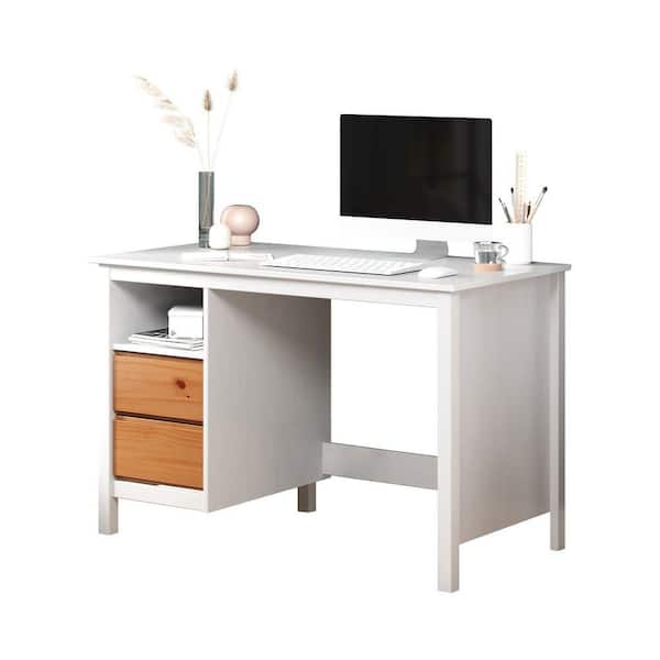 Eclipse 45.3 in. W Rectangular White Wood 2-Drawer Desk with Shelf