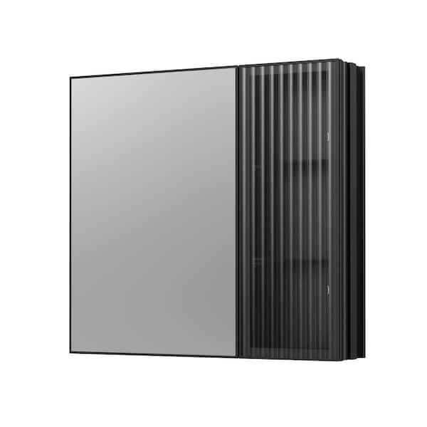 28 in. W x 26 in. H Rectangular Aluminum Alloy Recessed Medicine Cabinet with Mirror in Black