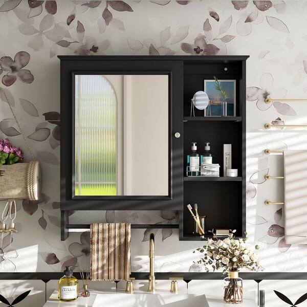 29 in. W x 28 in. H Rectangular Wall Mounted Medicine Cabinet with Mirror, Adjustable Shelves and Open Storage Levels