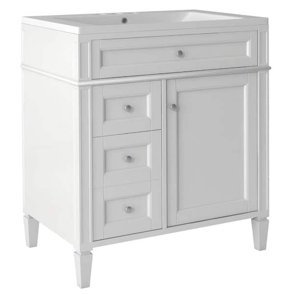 30 in. W White Wood Top Bath Vanity with Mirror, Storage Cabinet with 2 Drawers and a Tip-out Drawer in White