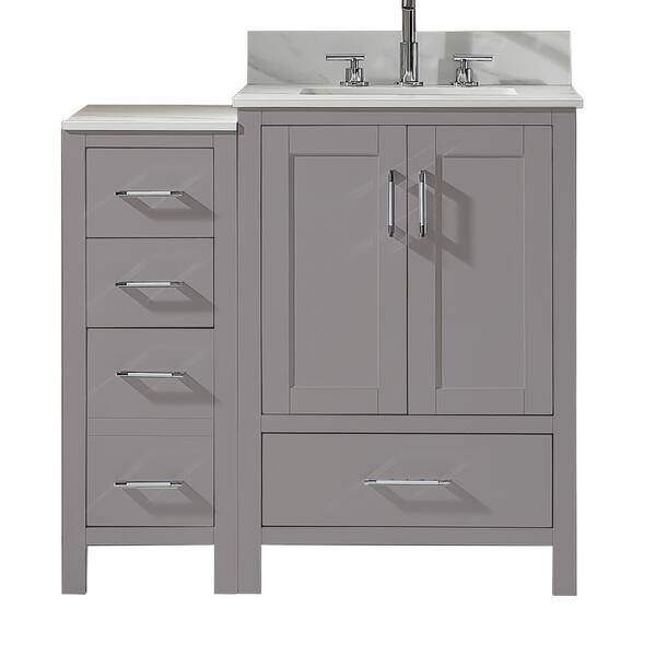 36 in. W x 22 in. D x 34 in . H Freestanding Bath Vanity in Gray with White Engineer Stone Top with White Sink