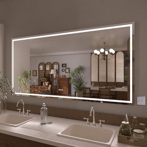 Althea 72 in. W x 36 in. H Rectangular Frameless LED Anti-Fog Wall Bathroom Vanity Mirror in Polished Crystal