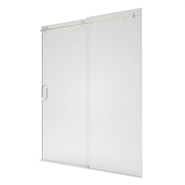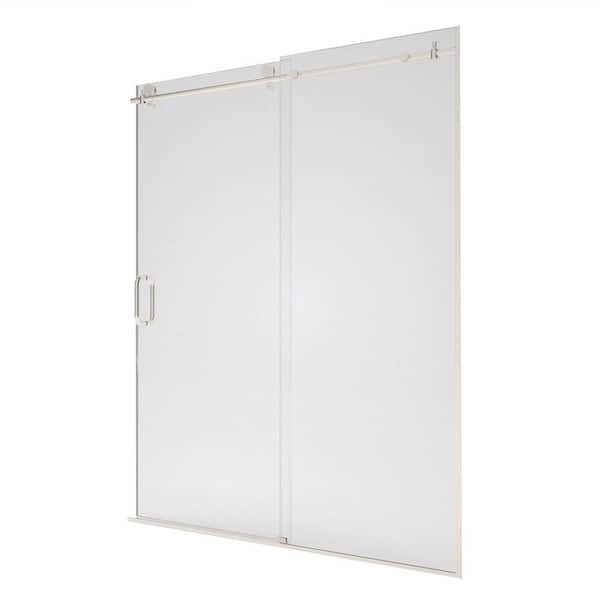 Arcus 60 in. W x 76 in. H Sliding Semi-Frameless Shower Door in Brushed Nickel Finish with Clear Glass