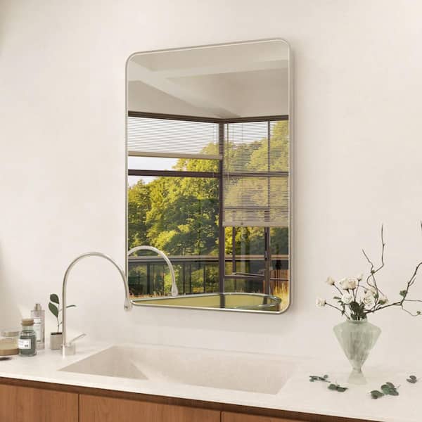 Dew 24 in. W x 36 in. H Rectangular Framed Wall Bathroom Vanity Mirror in Brushed Nickel
