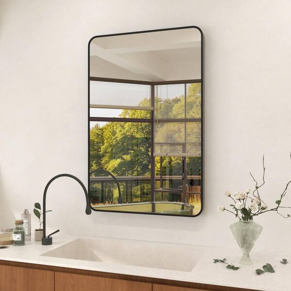 Dew 24 in. W x 36 in. H Rectangular Framed Wall Bathroom Vanity Mirror in Matte Black