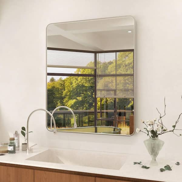 Dew 30 in. W x 36 in. H Rectangular Framed Wall Bathroom Vanity Mirror in Brushed Nickel