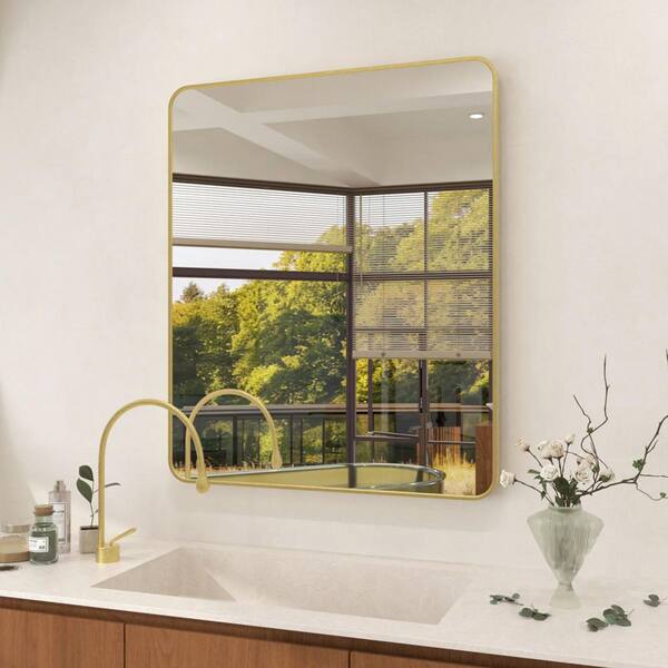 Dew 30 in. W x 36 in. H Rectangular Framed Wall Bathroom Vanity Mirror in Gold