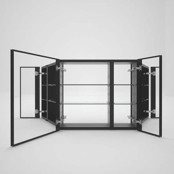 LuminaCare 30 in. W x 26 in. H Rectangular Black Aluminum Medicine Cabinet with Mirror