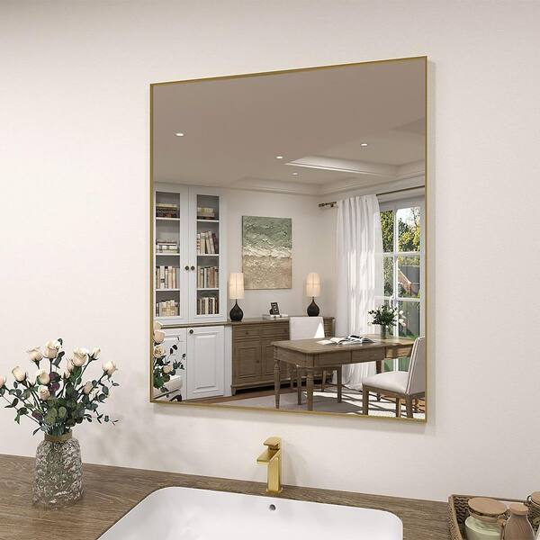 Vibe 36 in. W x 30 in. H Rectangular Framed Wall Bathroom Vanity Mirror in Brushed Gold