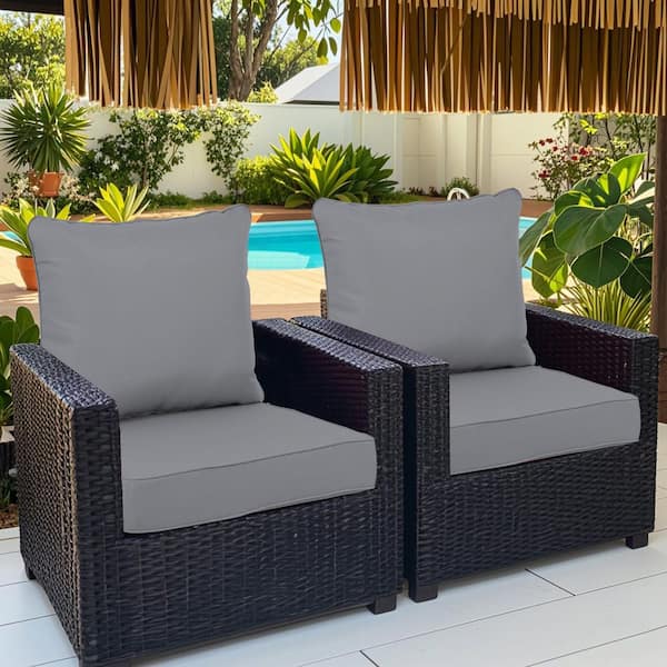 24 x 24 in. Outdoor Deep Seat Cushion (Set of 2), Waterproof and Fade Resistant Patio Cushions(Grey)